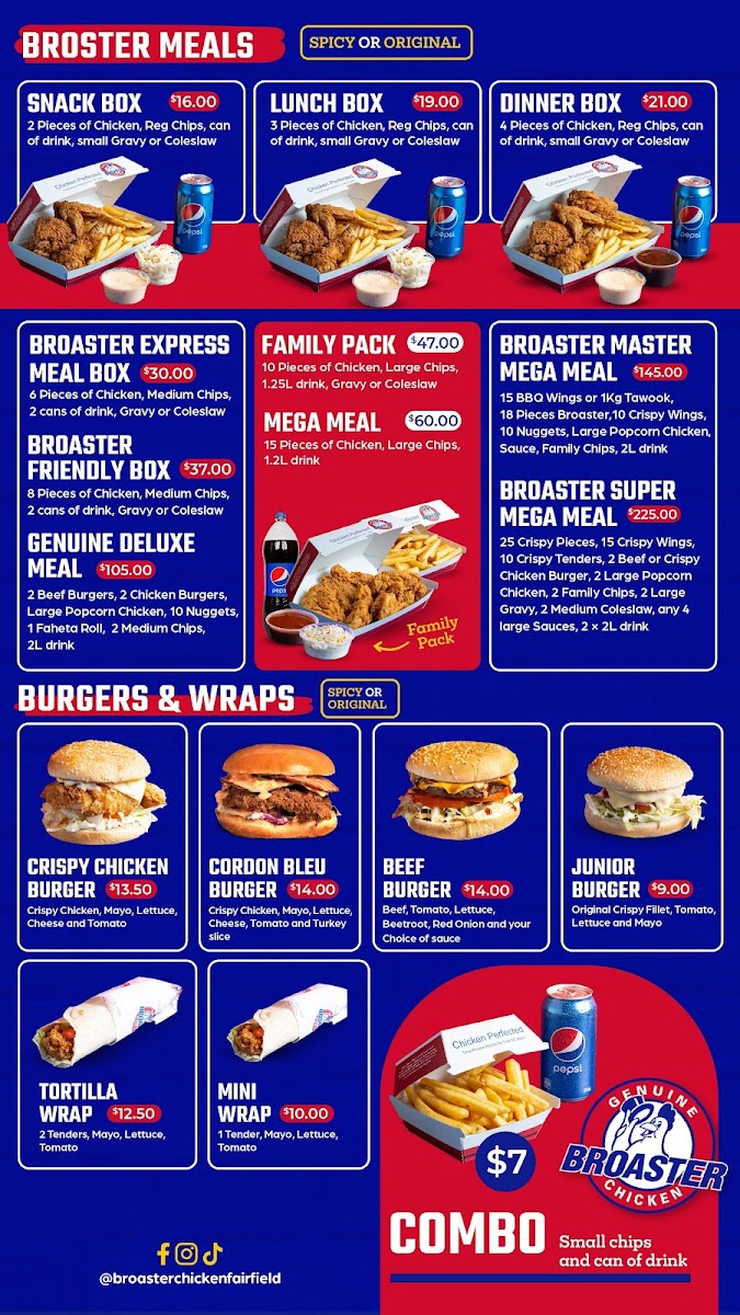 Welcome to Genuine Broaster Chicken Fairfield, a hidden gem located in Fairfield, NSW, known for its mouthwatering offerings. The menu is a delightful blend of flavors, prominently featuring their signature broaster chicken, prepared in both spicy and original styles. Each dish promises a crispy exterior and juicy tenderness that fans rave about, just like customer Lana Y CH highlights the exceptional "Syrian way" of preparation.